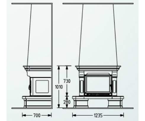Цена указана за камин в стандартном исполнении (см. чертеж) из указанных материалов без топки.