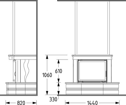 Цена указана за камин в стандартном исполнении (см. чертеж) из указанных материалов без топки.