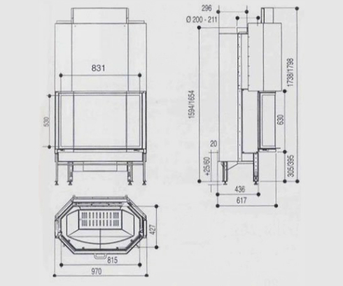 Система «чистое стекло» - технология, которая позволяет стеклу камина долгое время оставаться чистым и не коптиться. Также топка оснащена регулировкой подачи воздуха на горение и шиберной заслонкой с автоматическим открыванием(при открывании дверцы, шиберная заслонка открывается автоматически, данное преимущество позволяет максимально ограничить проникновение дымовых газов в комнату).