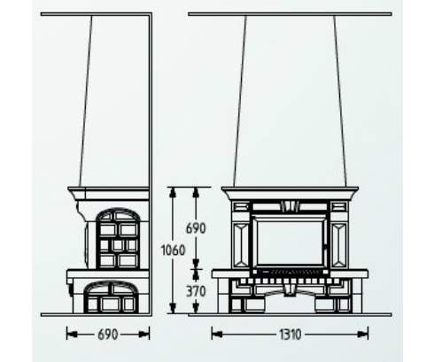 Цена указана за камин в стандартном исполнении (см. чертеж) из указанных материалов без топки.