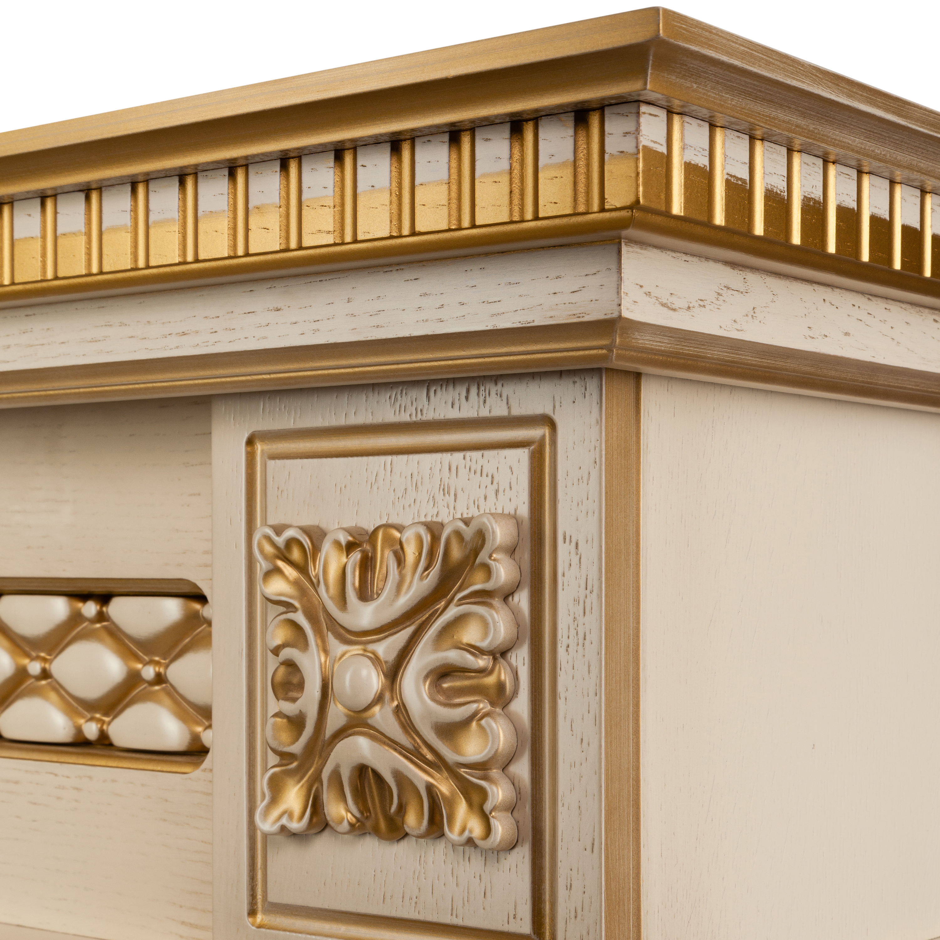 При изготовлении портала каминокомплекта использована не древесина современный материал МДФ. Его производство осуществляется из натуральной древесной фракции, чем и обусловлена волокнистая структура. За счет этого МДФ обладает основными преимуществами древесины, в частности, это касается прочности и плотности. Но стоит отметить, что устойчивость к перепадам параметров микроклимата в помещении выше. Поэтому появление трещин и других дефектов во время эксплуатации камина исключено. Поверхность основы покрыта натуральным шпоном, имитирующим цвет и фактуру белого дуба. Он одновременно выполняет функцию декорирования и дополнительной защиты МДФ от внешних негативных факторов, в том числе и физического воздействия.