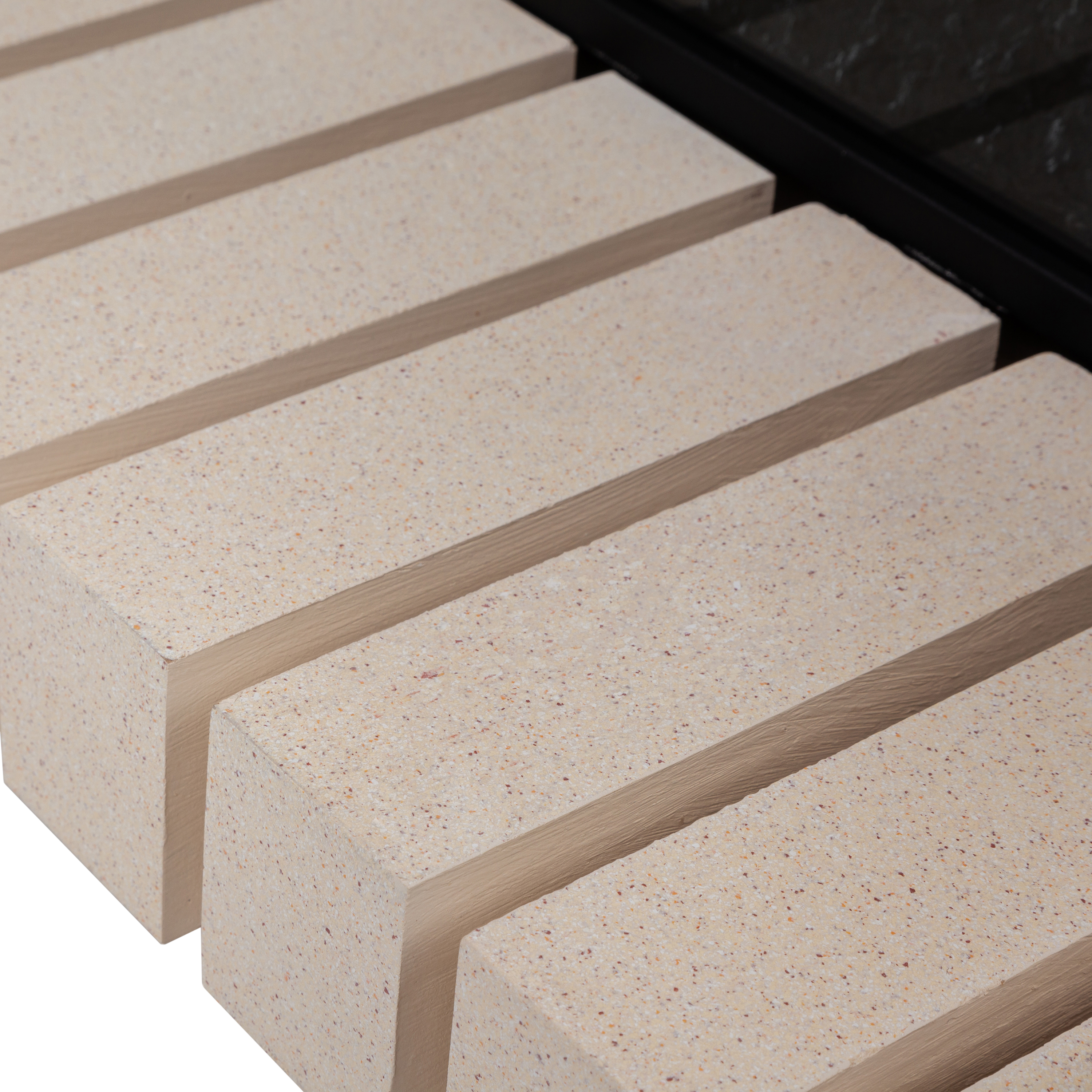 - Изготовлен из искусственного камня и МДФ, покрытого шпоном, - прочного, надежного и стойкого к любым внешним воздействиям материала. Сочетание светлого камня и дерева, декоративная фрезеровка. Дизайн дополнен выемкой для хранения дров в основании обрамления. С массивной каминной полкой.