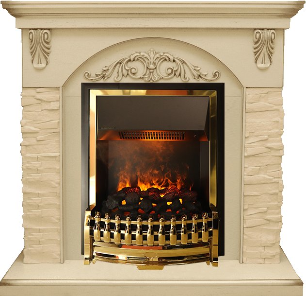 Электрический очаг Dimplex Atherton серии Opti-Myst с эффектом реального пламени. Этот стильный классический очаг в обрамлении золотого цвета предназначен для встраивания в порталы, выполненные в классическом стиле.