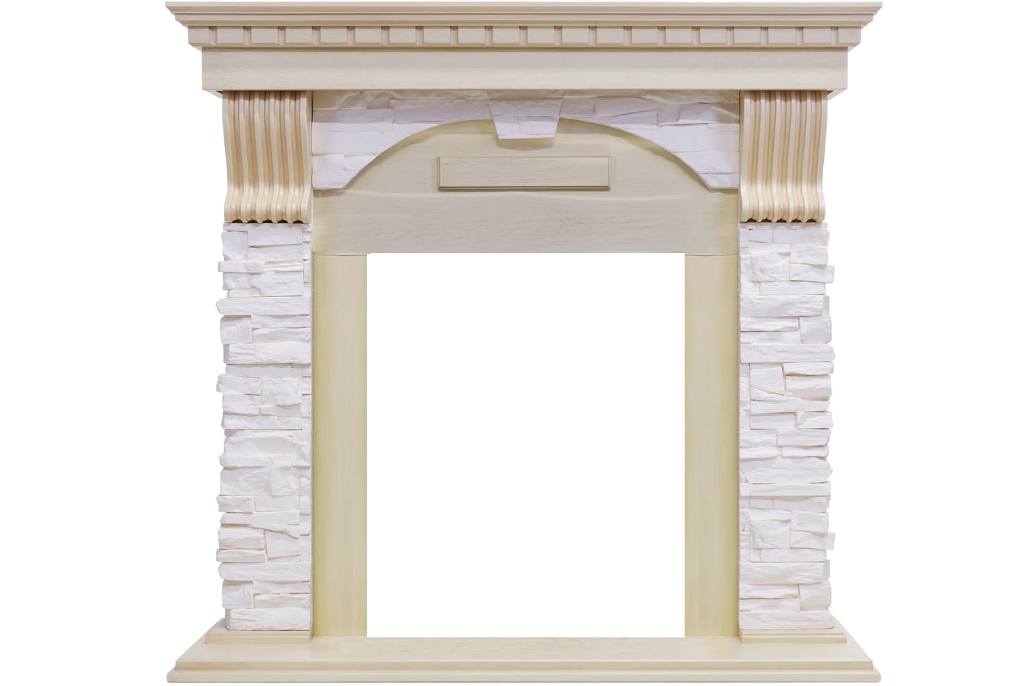 Популярные расцветки позволят подобрать подходящий вариант портала под любой интерьер. Зона очага выполнена в виде полукруглой арки, что акцентирует внимание как на самом очаге, так и на горящем в нем пламени.