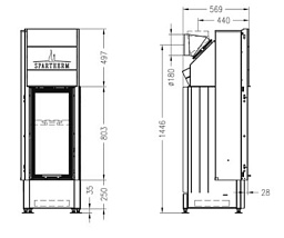 - Размеры очага ШхГхВ, (мм) 695x180x596