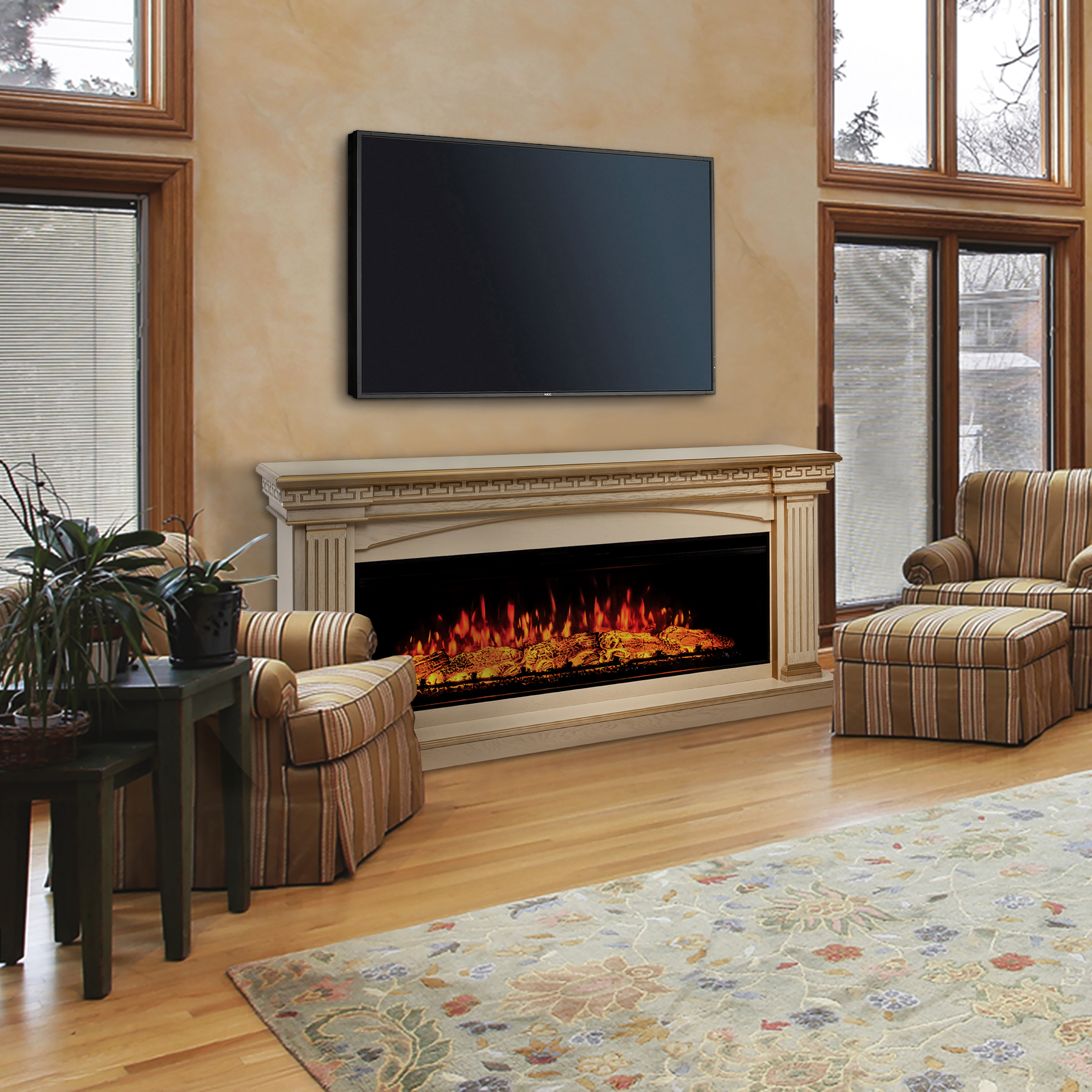 Портал в сочетании с очагом непременно станет центром внимания ваших гостей, создаст для вас уютную и комфортабельную обстановку, а образ горящего пламени со звуковым сопровождением и теплота, исходящая от камина, станут отличными помощниками в расслаблении души и тела после тяжелого рабочего дня.