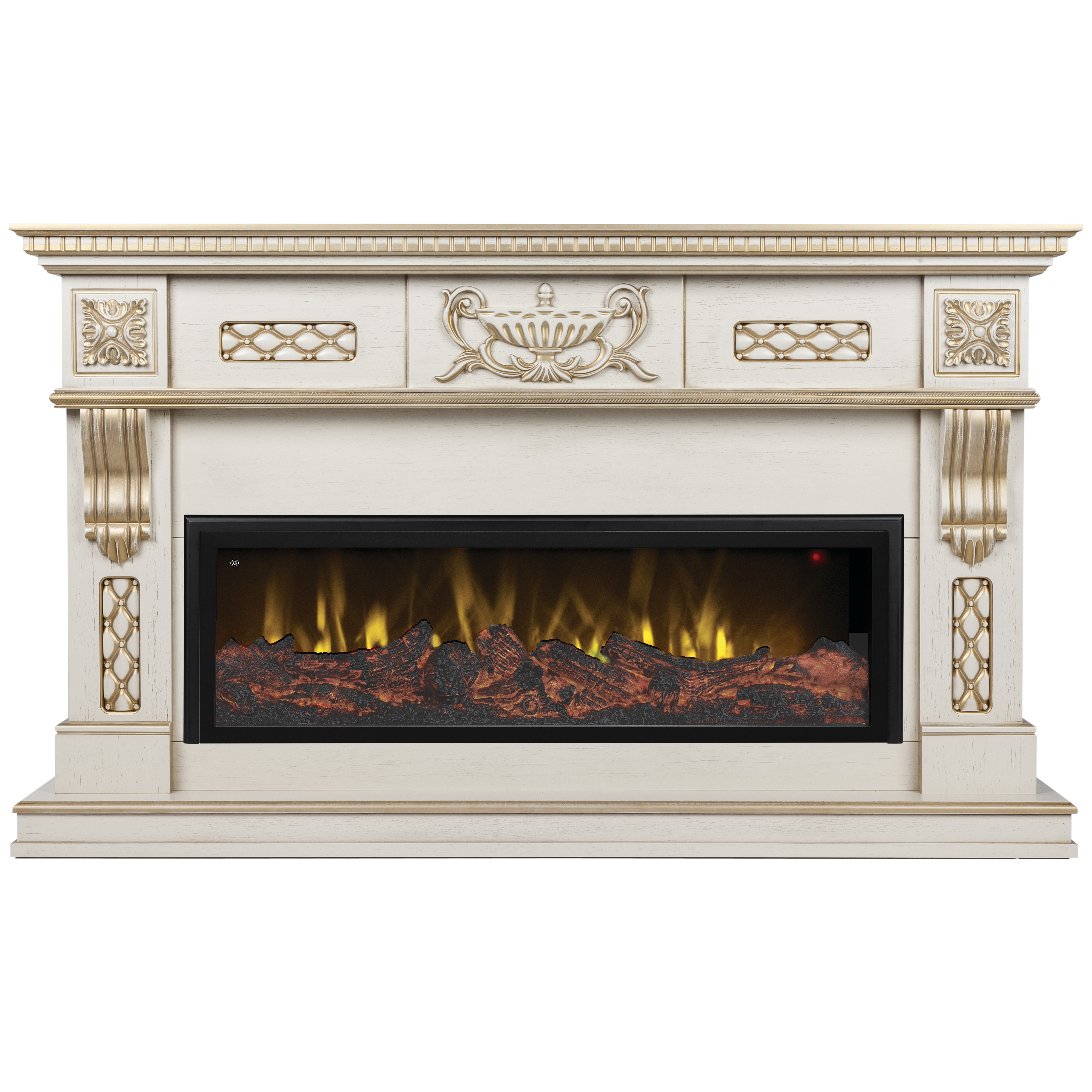 Каминокомплект RealFlame Corsica 42 WT очаг Beverly 1000 изготавливается только из качественных материалов таких, как МДФ и шпон. А классические цвета портала прекрасно подчеркивают яркое пламя камина.