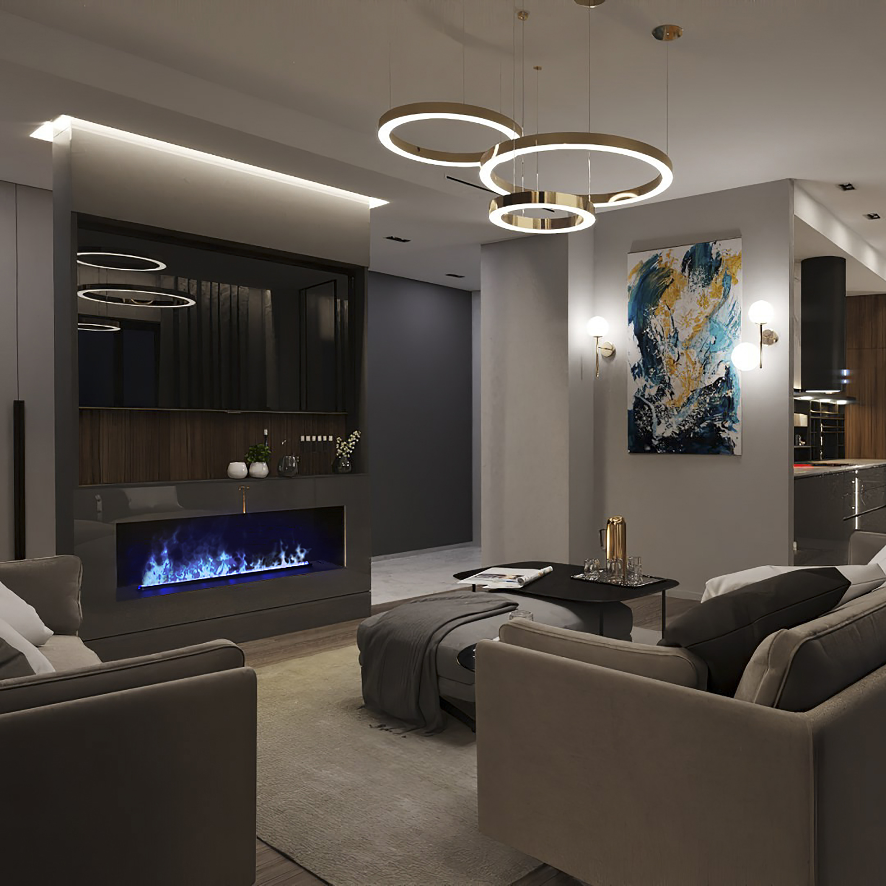 Полностью безопасен, даже для детей и животных. Нет никакого дыма и копоти, только вода. Паровые камины экологичны и удобны в квартире!