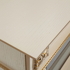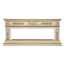 Высокий постамент, на котором расположен портал, выгодно возвышает камин, делая его основной частью любого интерьера. Изображения византийских колонн, увенчанных импостом с орнаментом, визуально поддерживают тонкую столешницу, которая завершает каминный ансамбль.