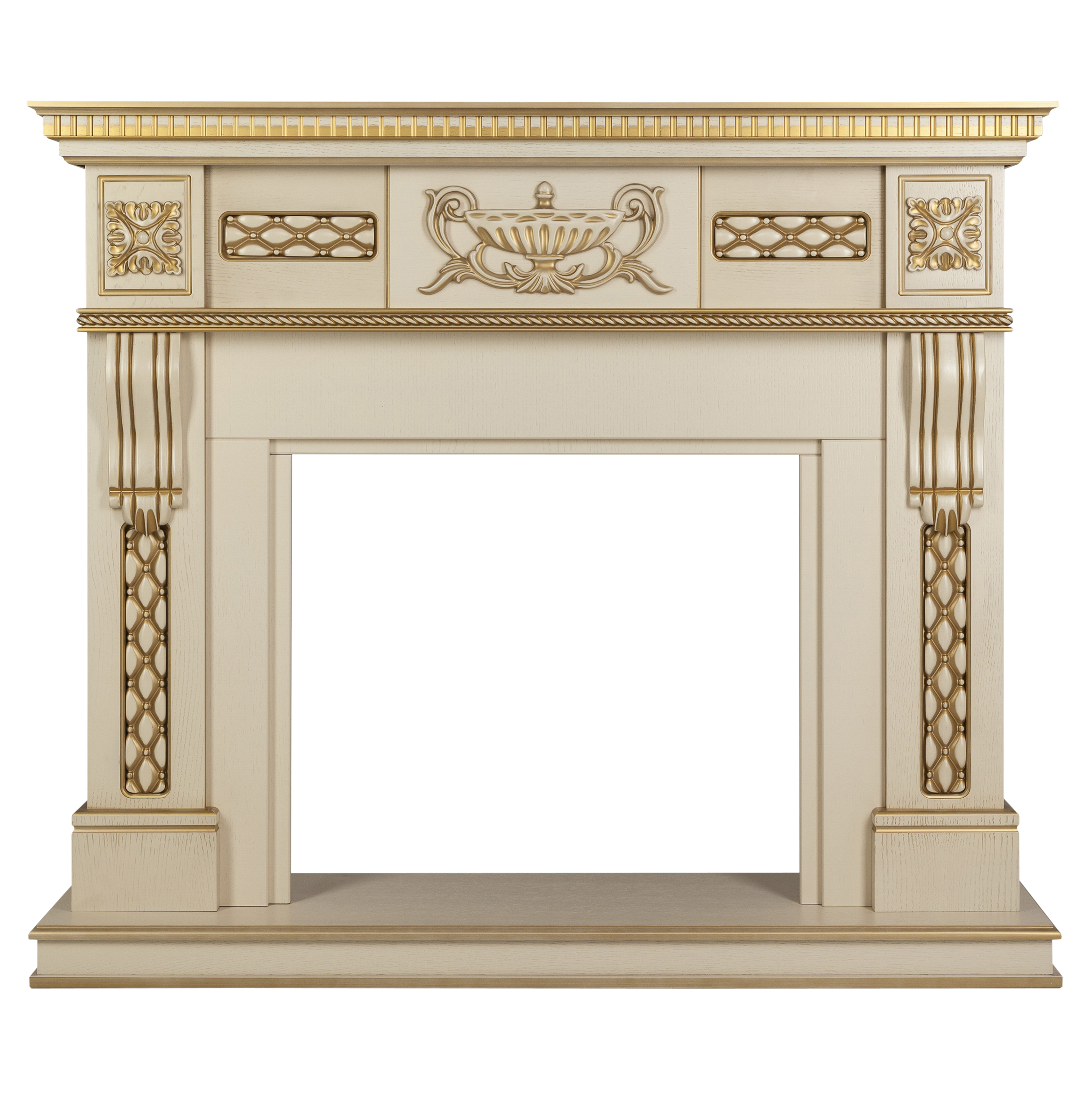 - Вставки имитируют натуральный золотой перламутр и делают этот камин уникальным.