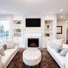 Электрокамин с мощностью 1.5 кВт способен обогреть до 16 кв м площади, электрокамин мощностью 2.0 кВт может обогреть до 25 кв м площади. Однако эти цифры могут варьироваться в зависимости от особенностей вашего помещения: проходная комната, наличие балкона, количество окон и их тип, высота потолков и т.д. Поэтому рассчитывать на электрокамин как на основной источник тепла не стоит, используйте его как источник тепла в дополнении к центральному отоплению.