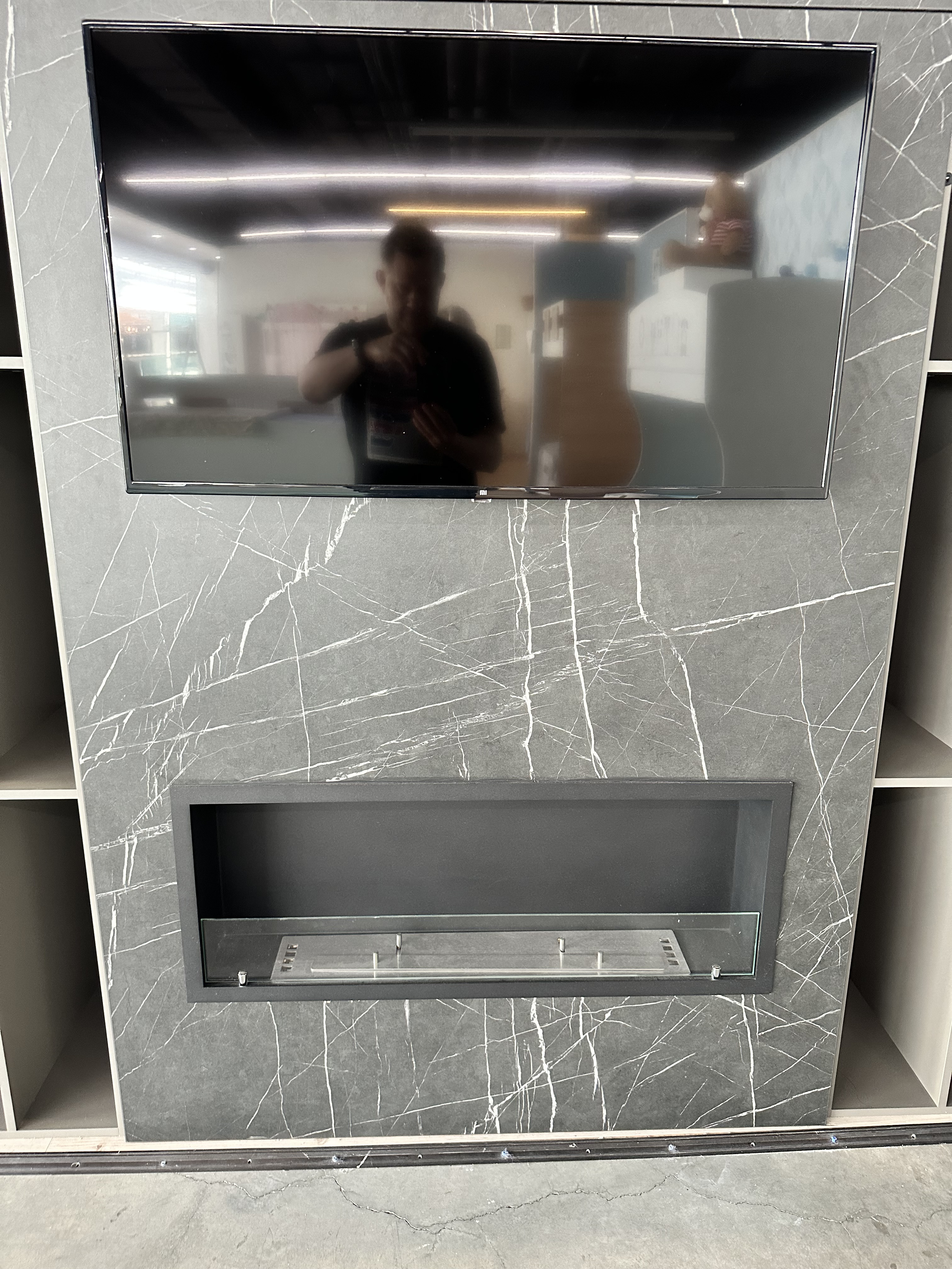 Семья Ирины сделала не большой шкаф, и на дверь решили повесить на нее не только телевизор, но и встроенный биокамин.Подбирая биокамин для своей квартиры, они смотрели на размер, возможность встроить его, и конечно стиль. Их выбор остановился на Firezo Classic.